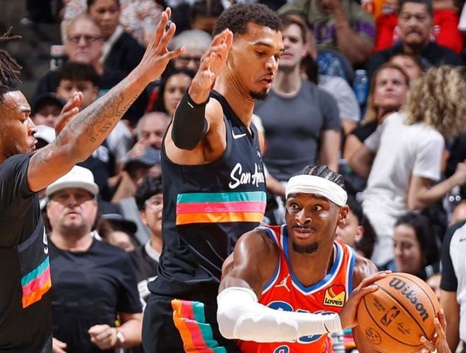说句难听但现实的话,别看亚历山大赢球和输球之间,场均只差了1.4记罚球,实际上赢球的比赛,对手竞争力普遍不强,基本也无法在季后赛遇到;但输掉的一些比赛,不是证明亚历山大不懂得造犯规,而是联盟试图通过这种方式,控制和“继续保护”雷霆。雷霆就像是吊在联盟其他争冠豪门前面的那根胡萝卜,亚历山大则更像是联盟激励其他超巨的提线木偶。我就举一个最简单的例子,马刺和雷霆的第四场对决,雷霆赢了,文班亚马比赛结束后,头也不回直接走向更衣室。队友和对手相谈甚欢,可文班亚马对雷霆的态度呢?