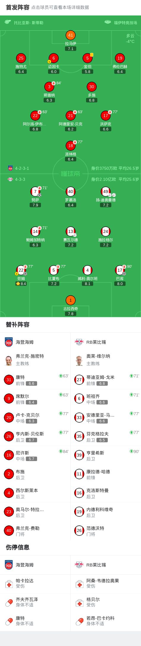 北京时间1月24日,德国足球甲级联赛第19轮,海登海姆主场对阵RB莱比锡。扬-迪奥曼德送出助攻,巴库破门得分;随后赛瓦尔德送出助攻,努萨破门得分;紧接着扬-迪奥曼德再度送出助攻,劳姆破门得分。最终,海登海姆0比3不敌RB莱比锡。