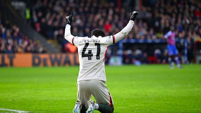第34分钟,水晶宫的前场回传出现严重失误,埃斯特旺抢断得手,长驱直入,单刀破门。