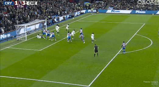 第87分钟,切尔西小禁区内形成混战,理查兹头球扳回一城。水晶宫1比3切尔西!