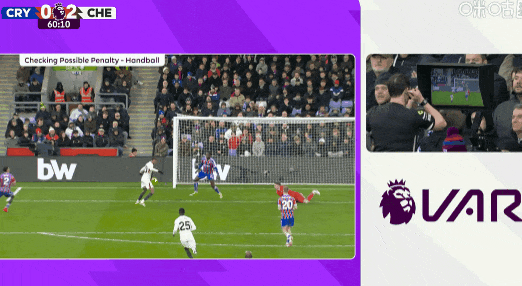 第58分钟,康沃禁区内手球,主裁判回看VAR判罚“黄点套餐”,恩佐一蹴而就。切尔西3比0水晶宫!